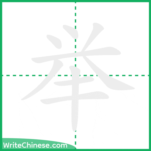 Learn to write the Chinese character "举" by watching the stroke order animation of "举".