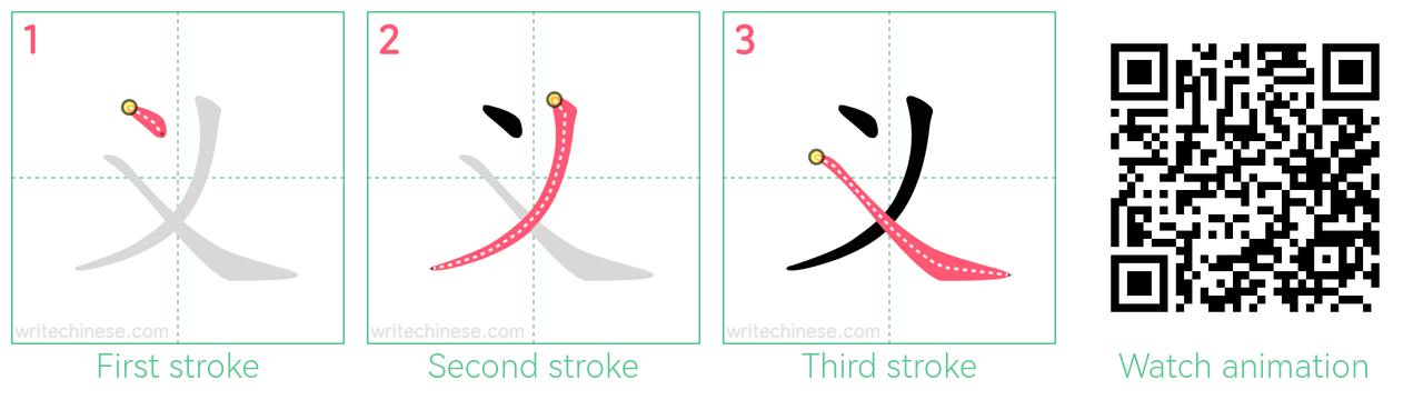 Learn to write the Chinese character "义" by watching the stroke order animation of "义".
