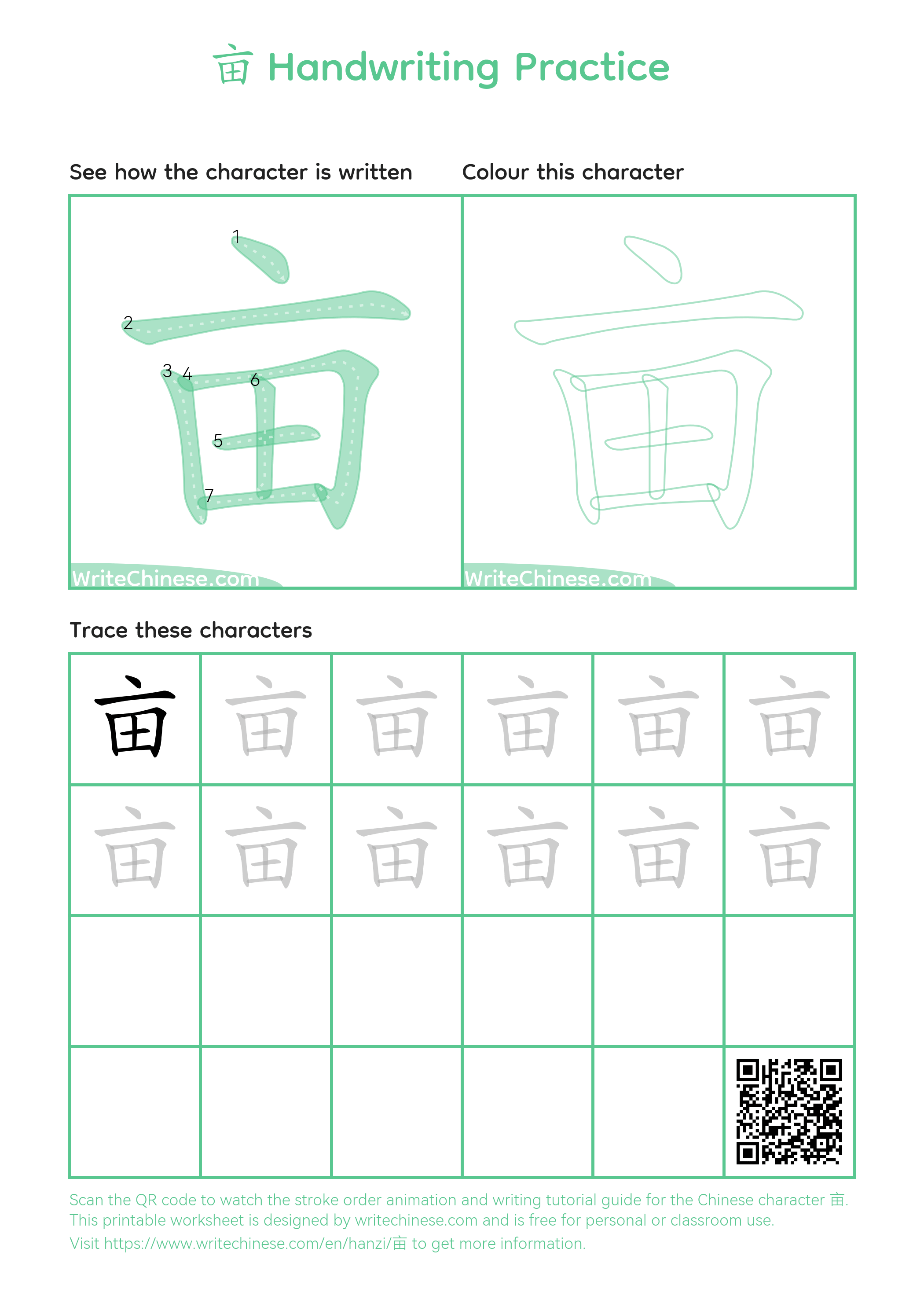 Chinese Character '亩'. You can download the printable handwriting worksheets below and