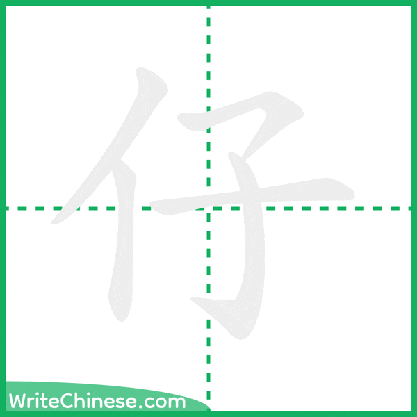 Learn to write the Chinese character "仔" by watching the stroke order animation of "仔".