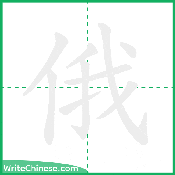 Learn to write the Chinese character "俄" by watching the stroke order animation of "俄".