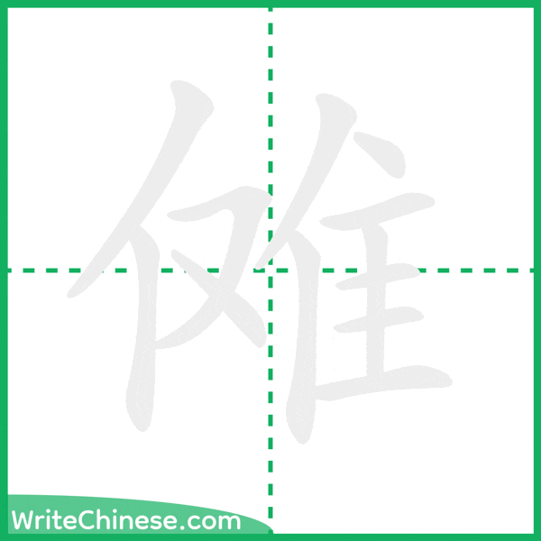 Learn to write the Chinese character "傩" by watching the stroke order animation of "傩".