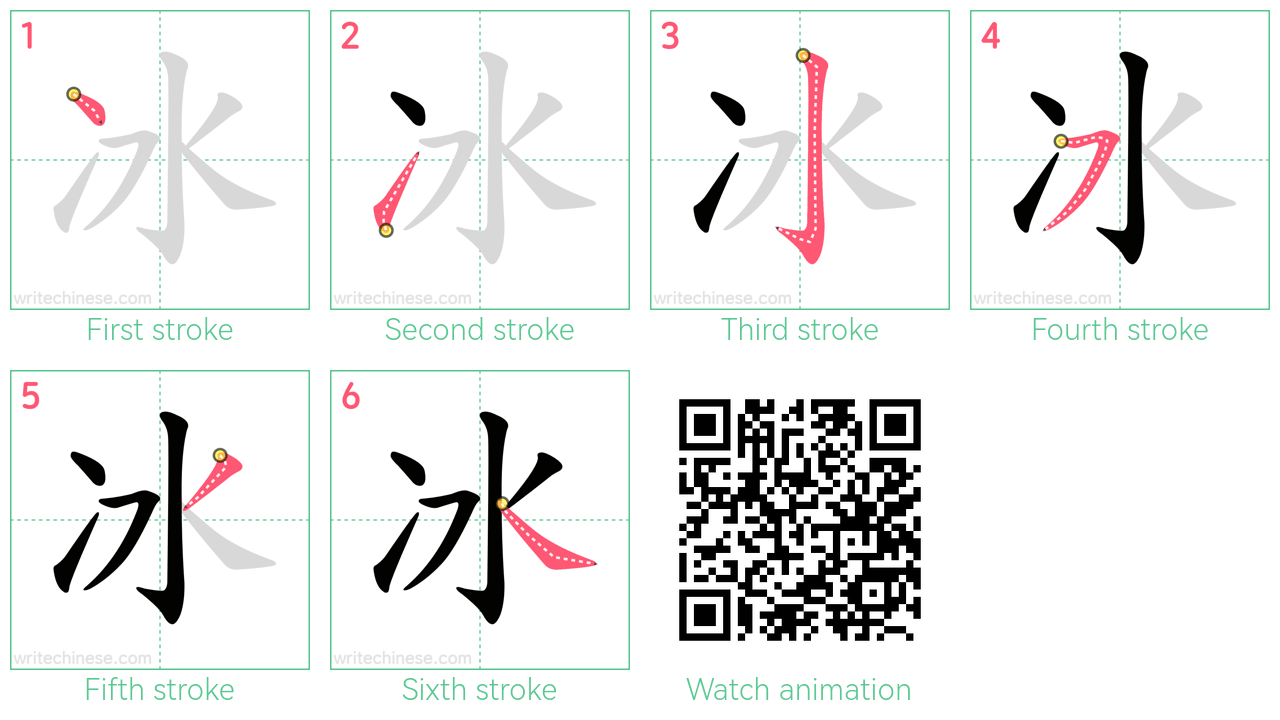Learn to write the Chinese character "冰" by watching the stroke order animation of "冰".