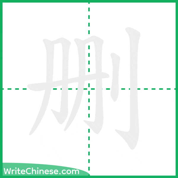 Learn to write the Chinese character "删" by watching the stroke order animation of "删".