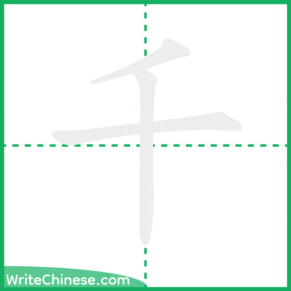 Learn to write the Chinese character "千" by watching the stroke order animation of "千".