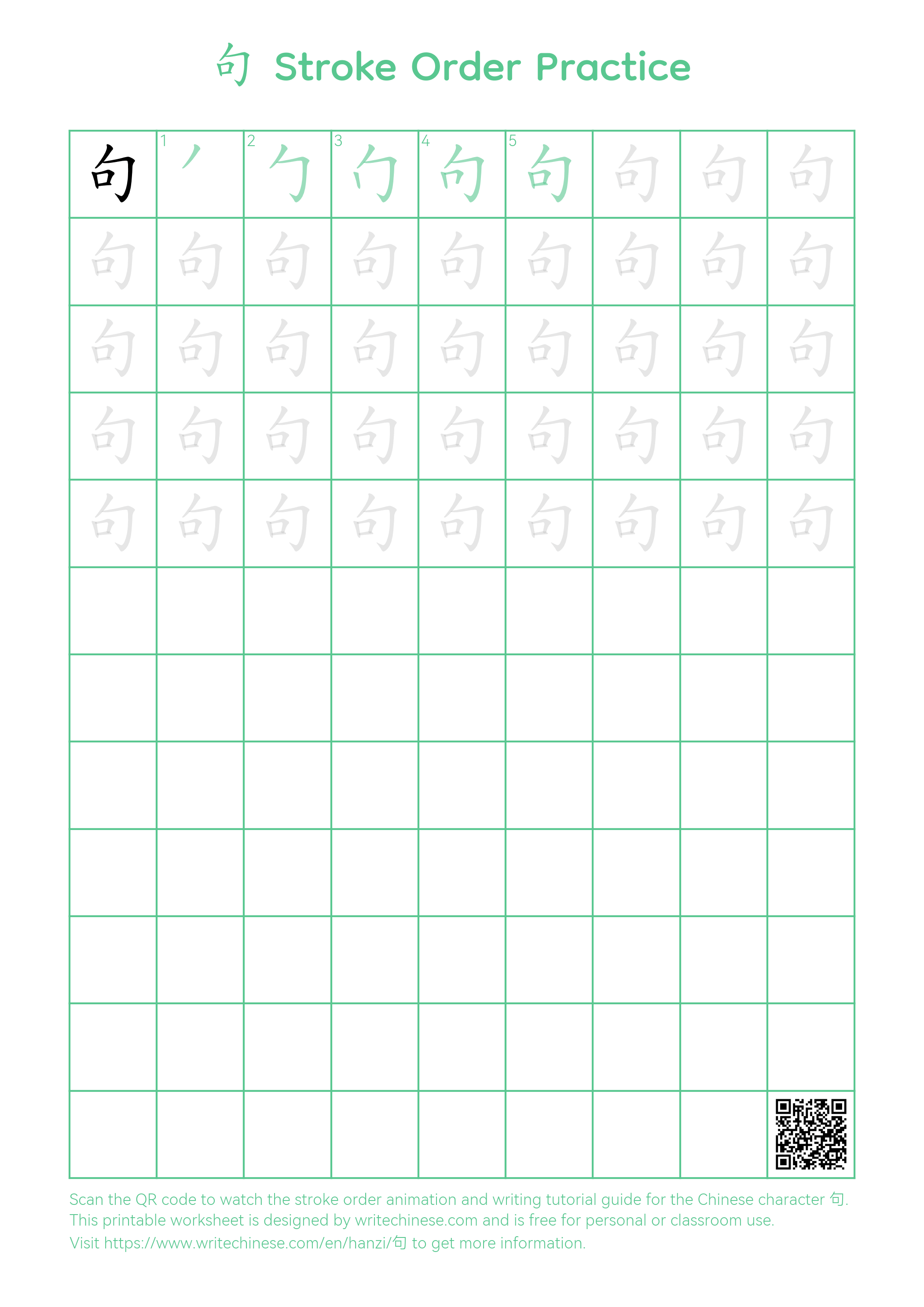 Chinese Character '句'. You can download the printable handwriting worksheets below and