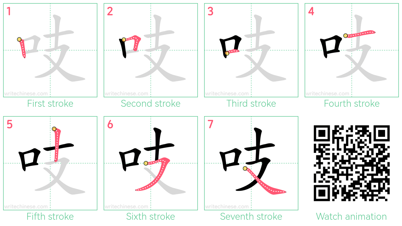 Learn to write the Chinese character "吱" by watching the stroke order animation of "吱".
