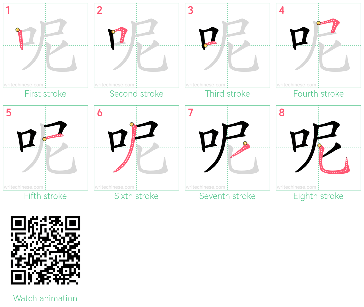 呢 stroke order animation