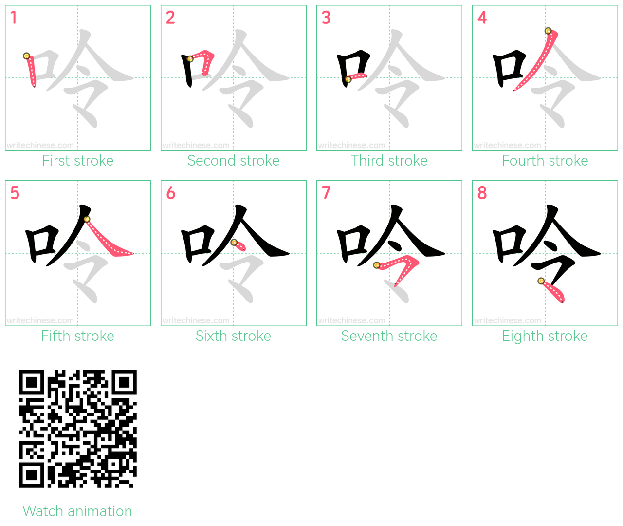 Learn to write the Chinese character "呤" by watching the stroke order animation of "呤".