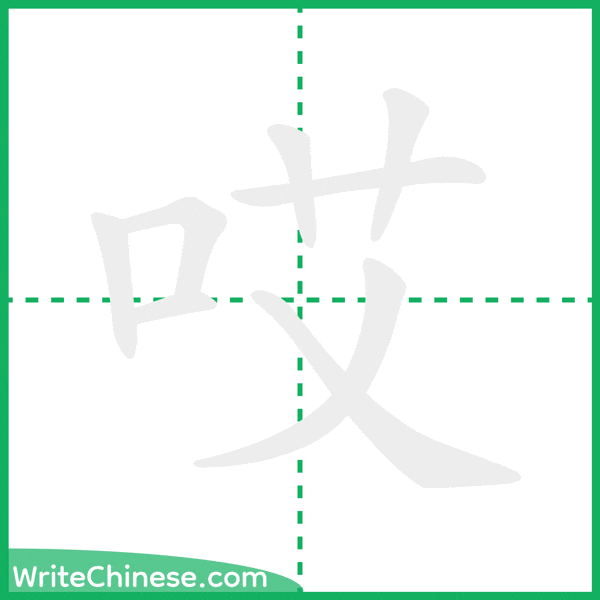 Master the Chinese character '哎' stroke by stroke with visual step-by-step instructions.