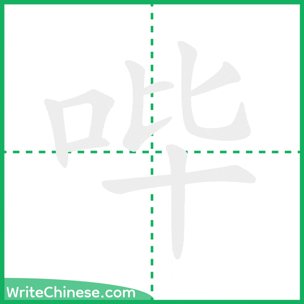 Learn to write the Chinese character "哔" by watching the stroke order animation of "哔".
