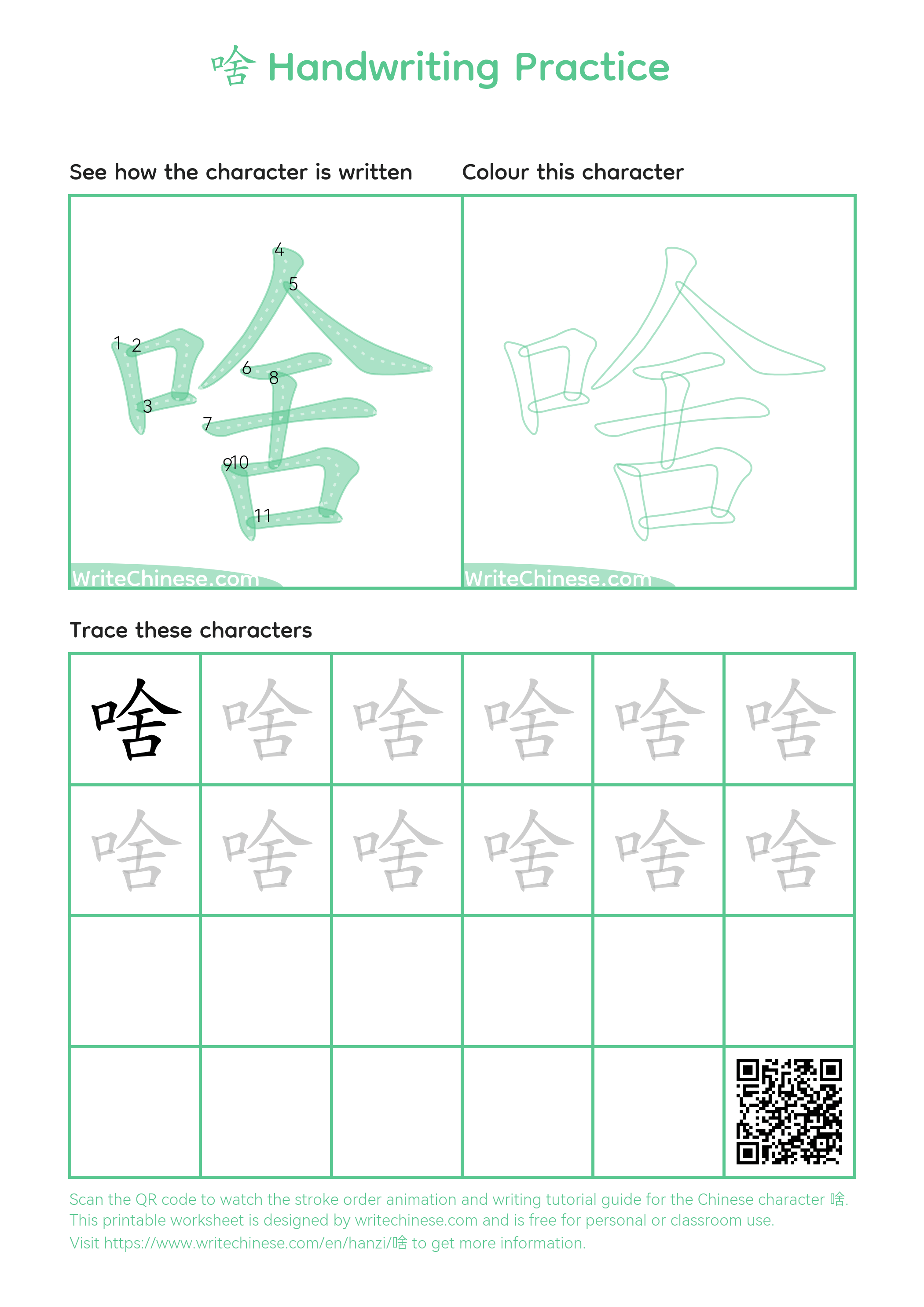 Learn the proper way to write the Chinese character '啥' through a video tutorial with a calligraphy teacher. Follow the Calligraphy Master's Step-by-Step Guide to Write the Chinese Character '啥'. You can download the printable handwriting worksheets below and practice writing together with pen and paper.