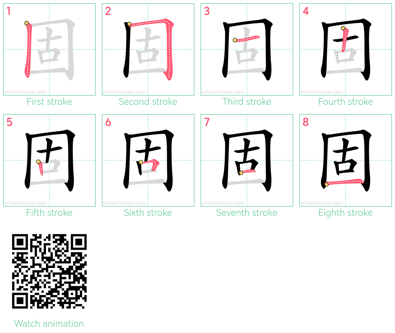 Printable Stroke Order Practice Worksheet of the Chinese character 固
