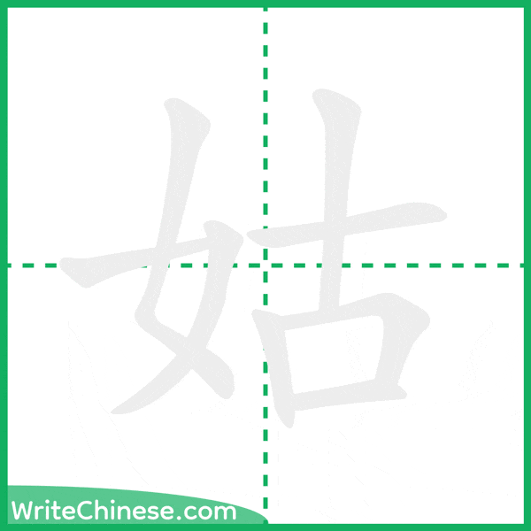Learn to write the Chinese character "姑" by watching the stroke order animation of "姑".