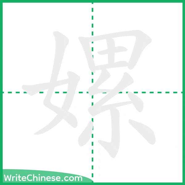 Learn to write the Chinese character "嫘" by watching the stroke order animation of "嫘".