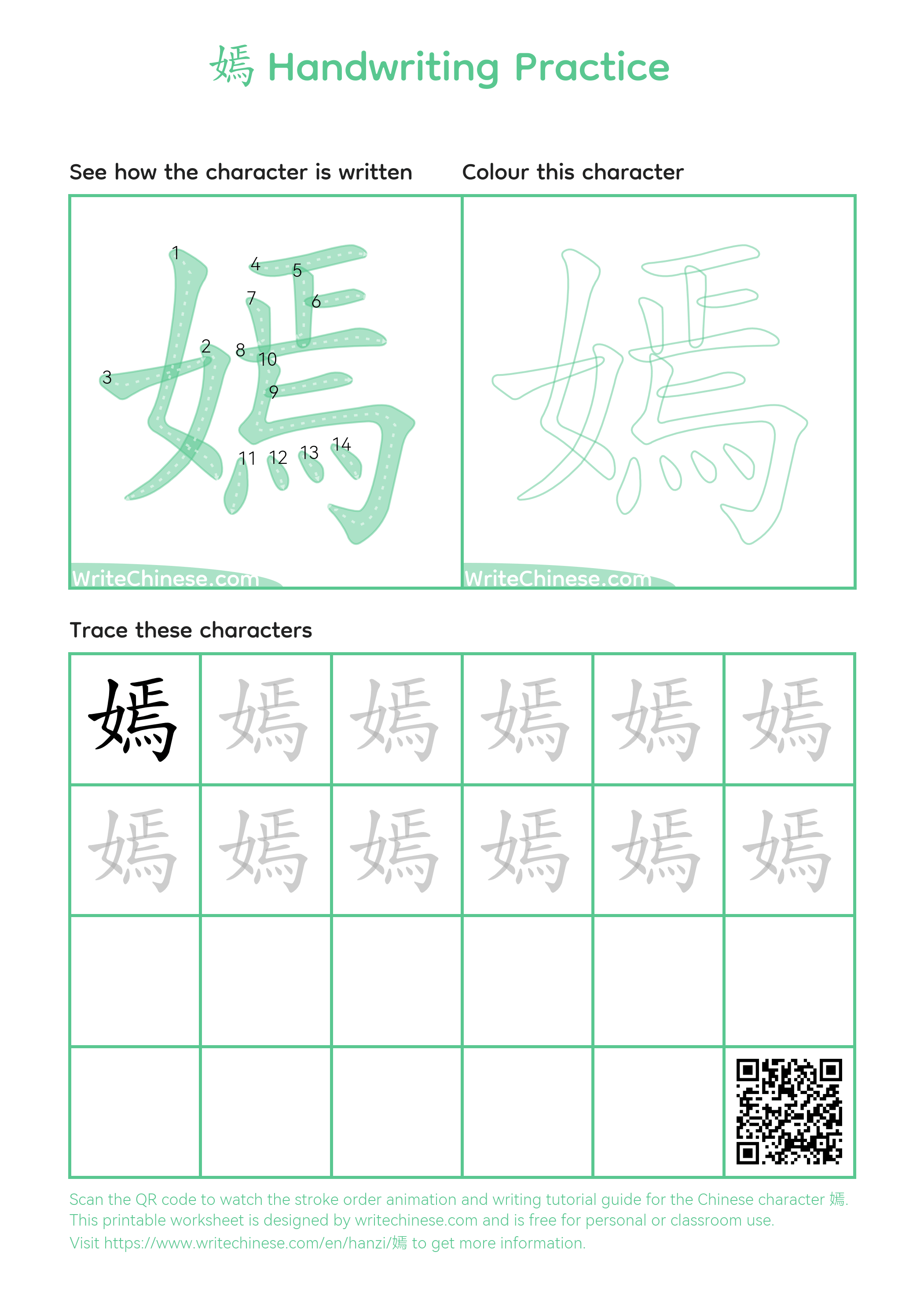 Learn the proper way to write the Chinese character '嫣' through a video tutorial with a calligraphy teacher. Follow the Calligraphy Master's Step-by-Step Guide to Write the Chinese Character '嫣'. You can download the printable handwriting worksheets below and practice writing together with pen and paper.