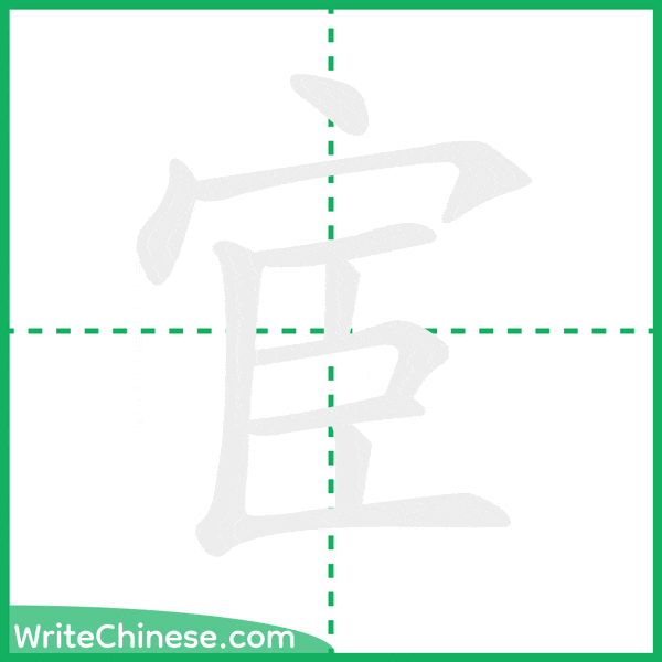 Learn to write the Chinese character "宦" by watching the stroke order animation of "宦".