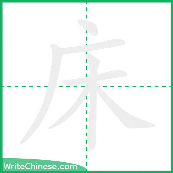Learn to write the Chinese character "床" by watching the stroke order animation of "床".