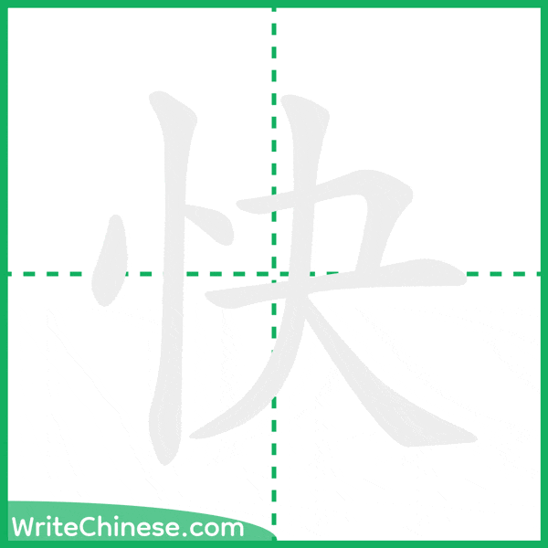 Learn to write the Chinese character "快" by watching the stroke order animation of "快".