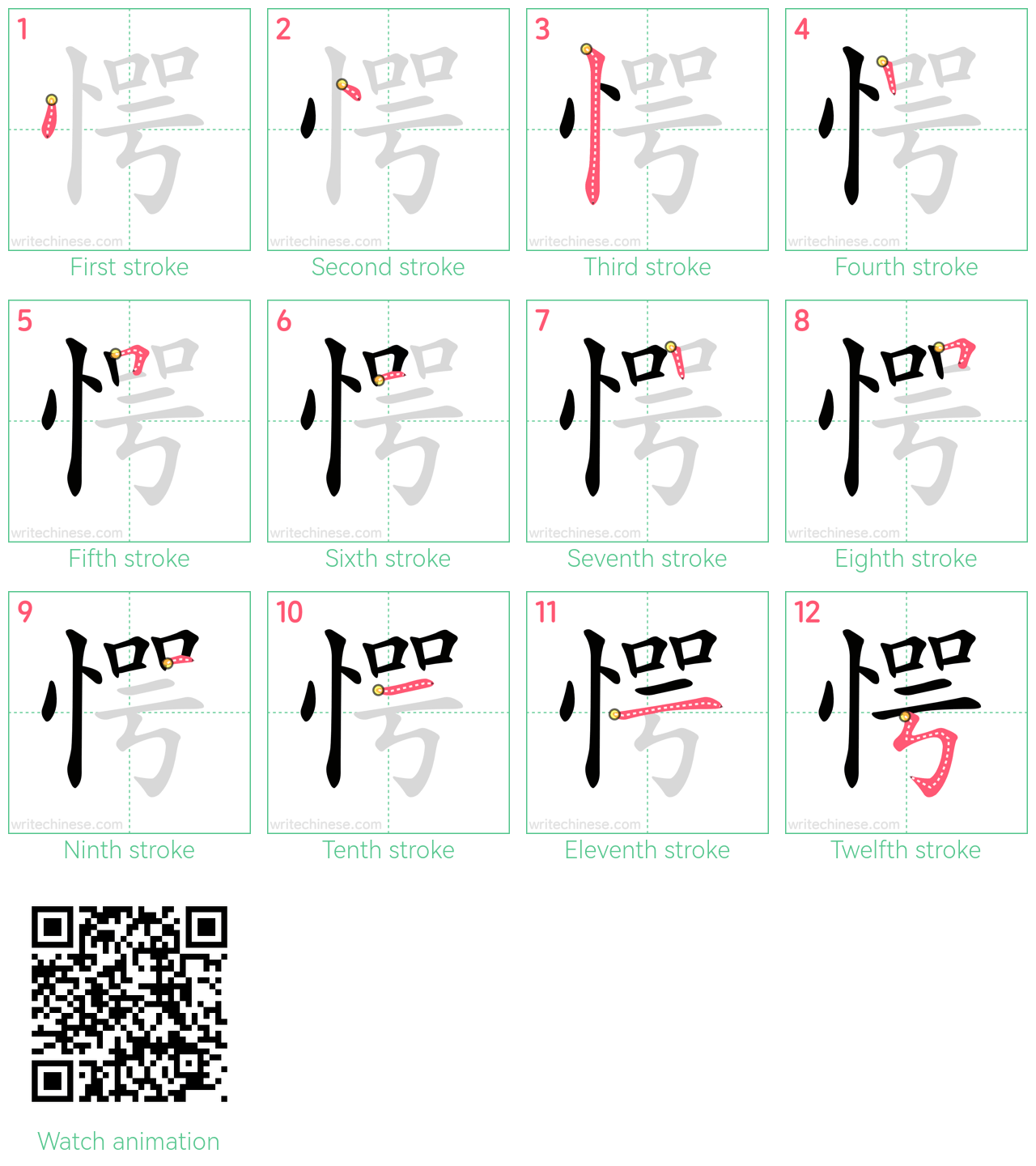 Learn to write the Chinese character "愕" by watching the stroke order animation of "愕".