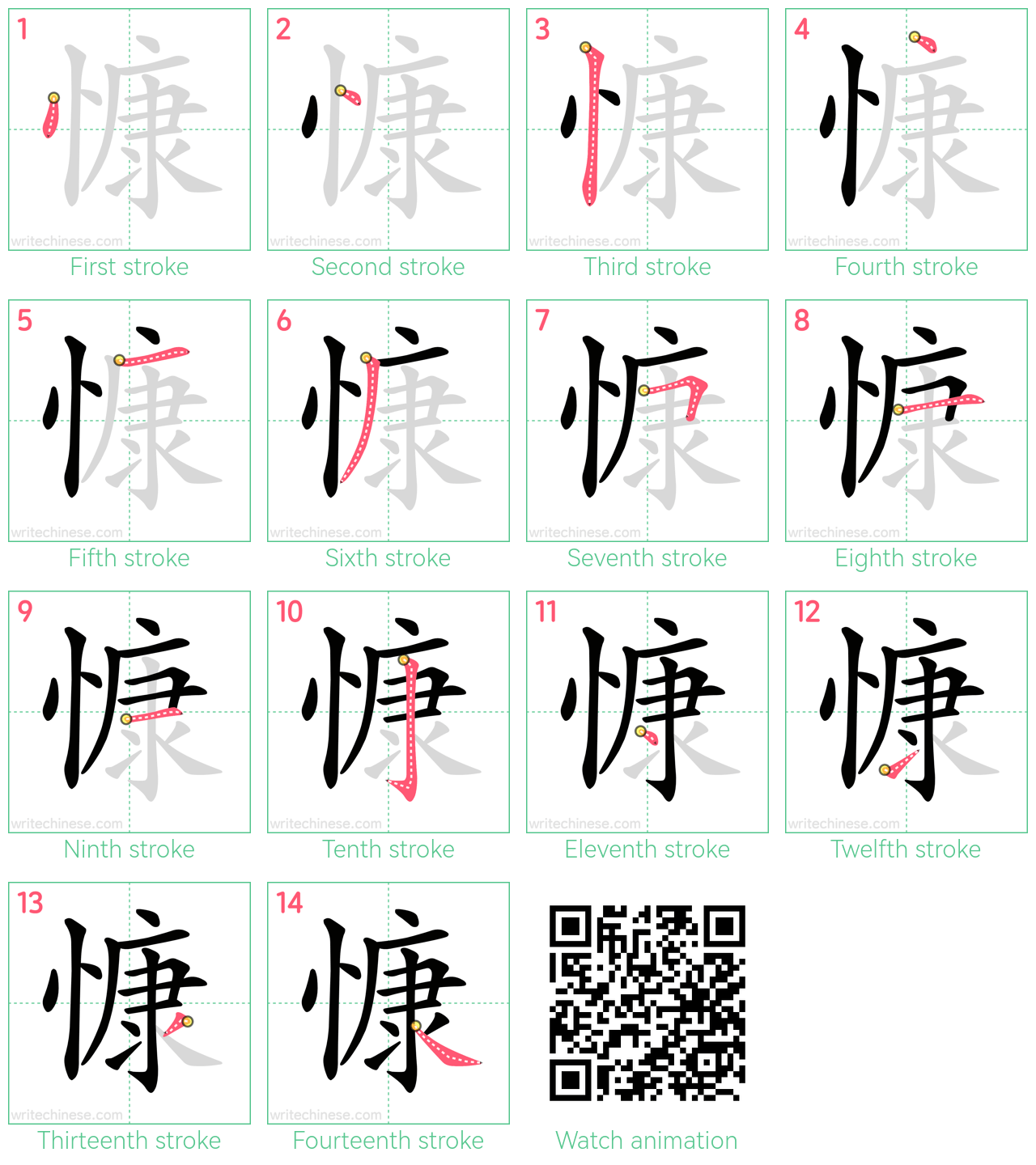 Master the Chinese character '慷' stroke by stroke with visual step-by-step instructions.