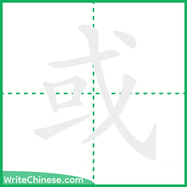Learn to write the Chinese character "或" by watching the stroke order animation of "或".