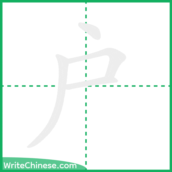Learn to write the Chinese character "户" by watching the stroke order animation of "户".