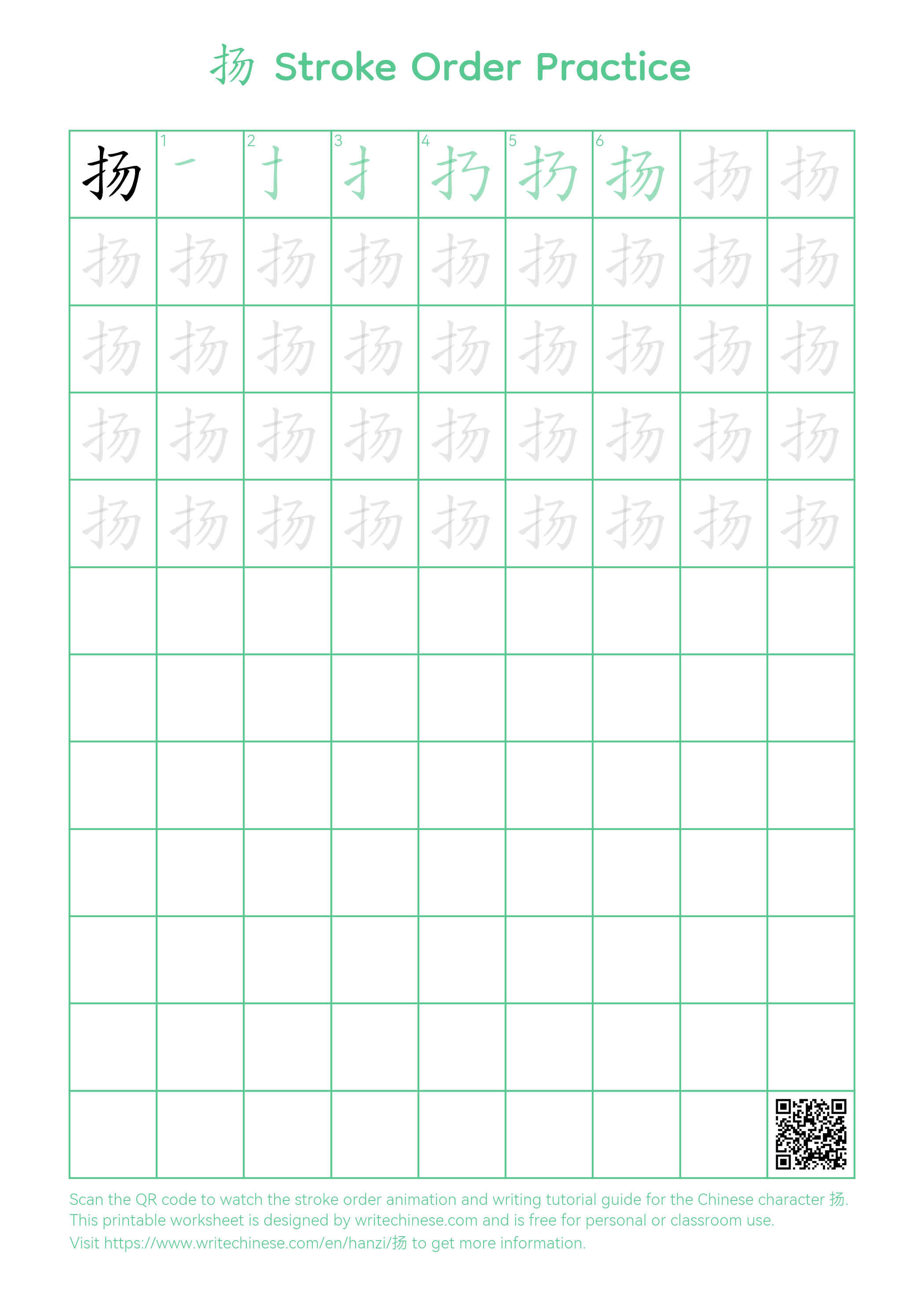 Printable Stroke Order Practice Worksheet of the Chinese character 扬