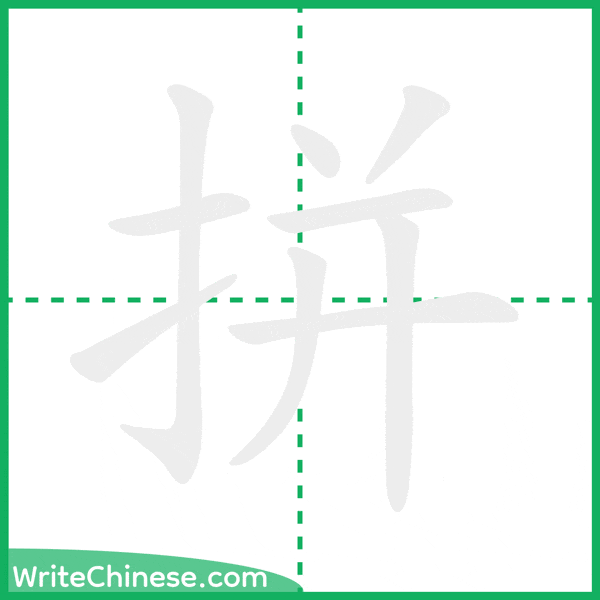 Master the Chinese character '拼' stroke by stroke with visual step-by-step instructions.
