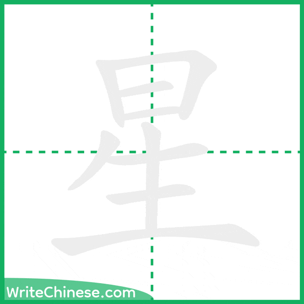 Learn to write the Chinese character "星" by watching the stroke order animation of "星".