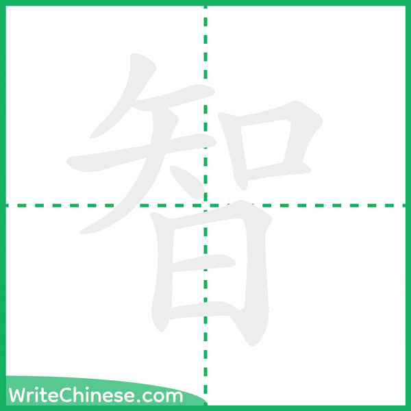 Learn to write the Chinese character "智" by watching the stroke order animation of "智".