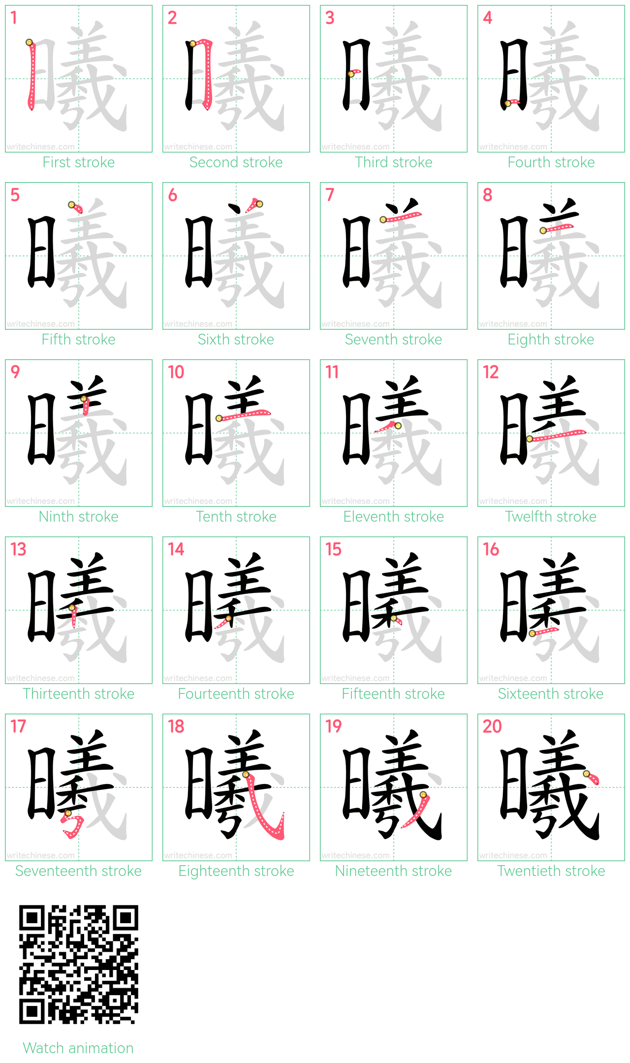 Learn to write the Chinese character "曦" by watching the stroke order animation of "曦".