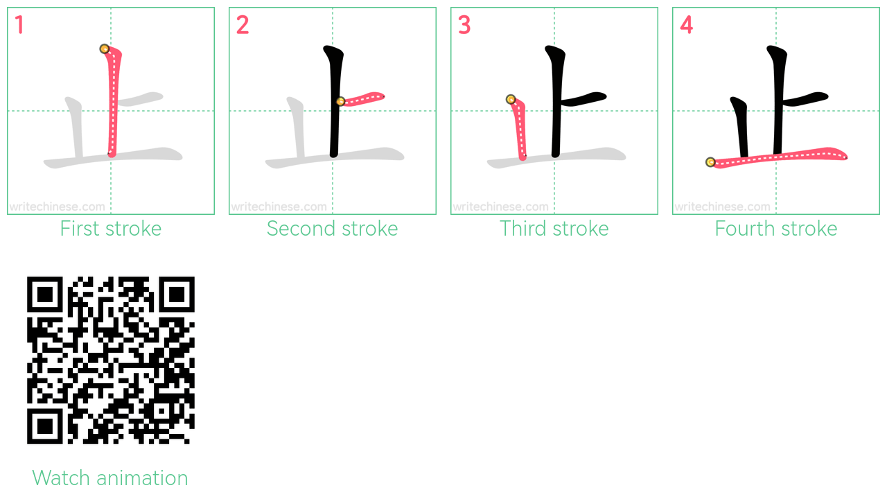 Printable Stroke Order Practice Worksheet of the Chinese character 止