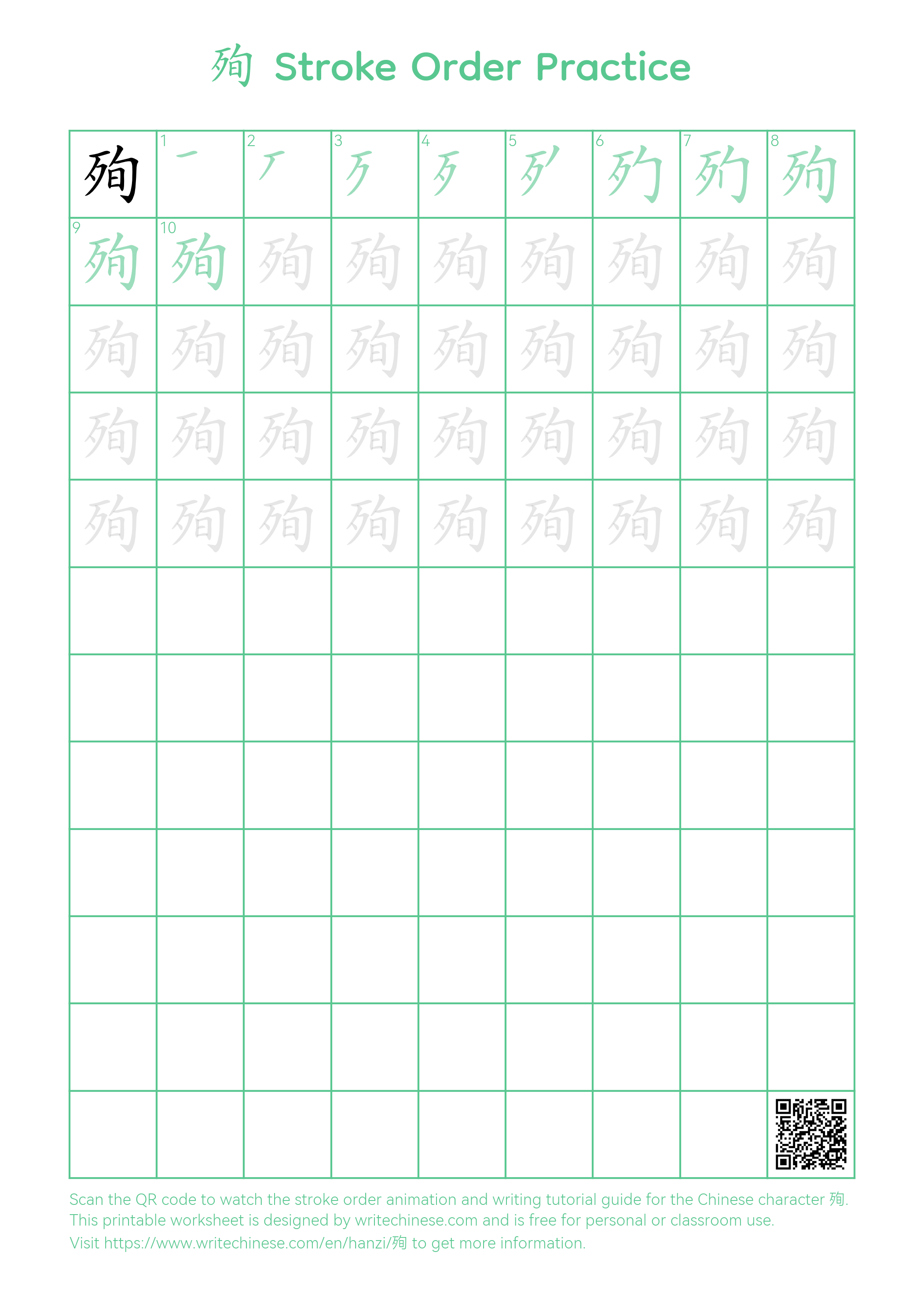 All Chinese stroke order images, animations, videos, and printable worksheets on this website are free for personal or classroom use. Please indicate the source and URL of the website when using them.