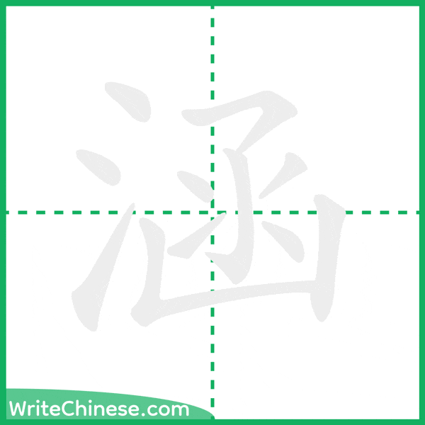 Learn to write the Chinese character "涵" by watching the stroke order animation of "涵".