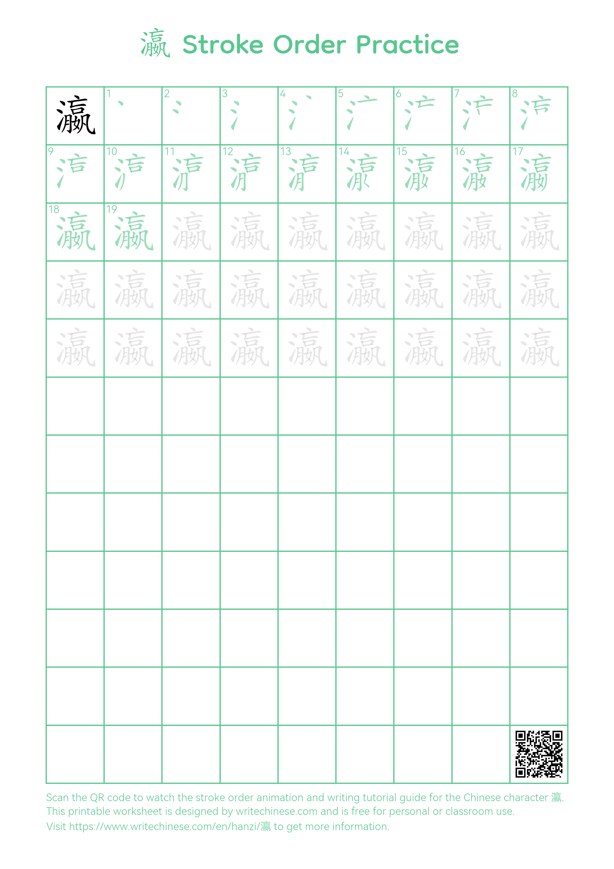 Printable Stroke Order Practice Worksheet of the Chinese character 瀛