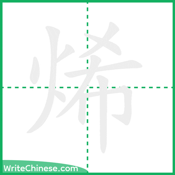 Master the Chinese character '烯' stroke by stroke with visual step-by-step instructions.