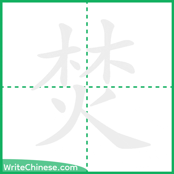 Learn to write the Chinese character "焚" by watching the stroke order animation of "焚".