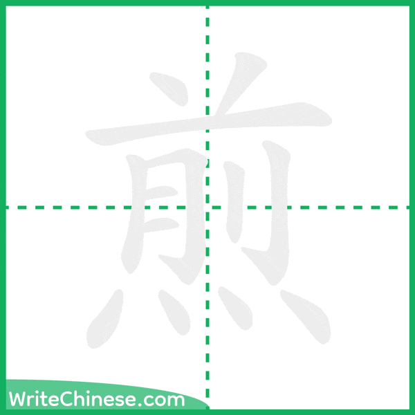 Learn to write the Chinese character "煎" by watching the stroke order animation of "煎".