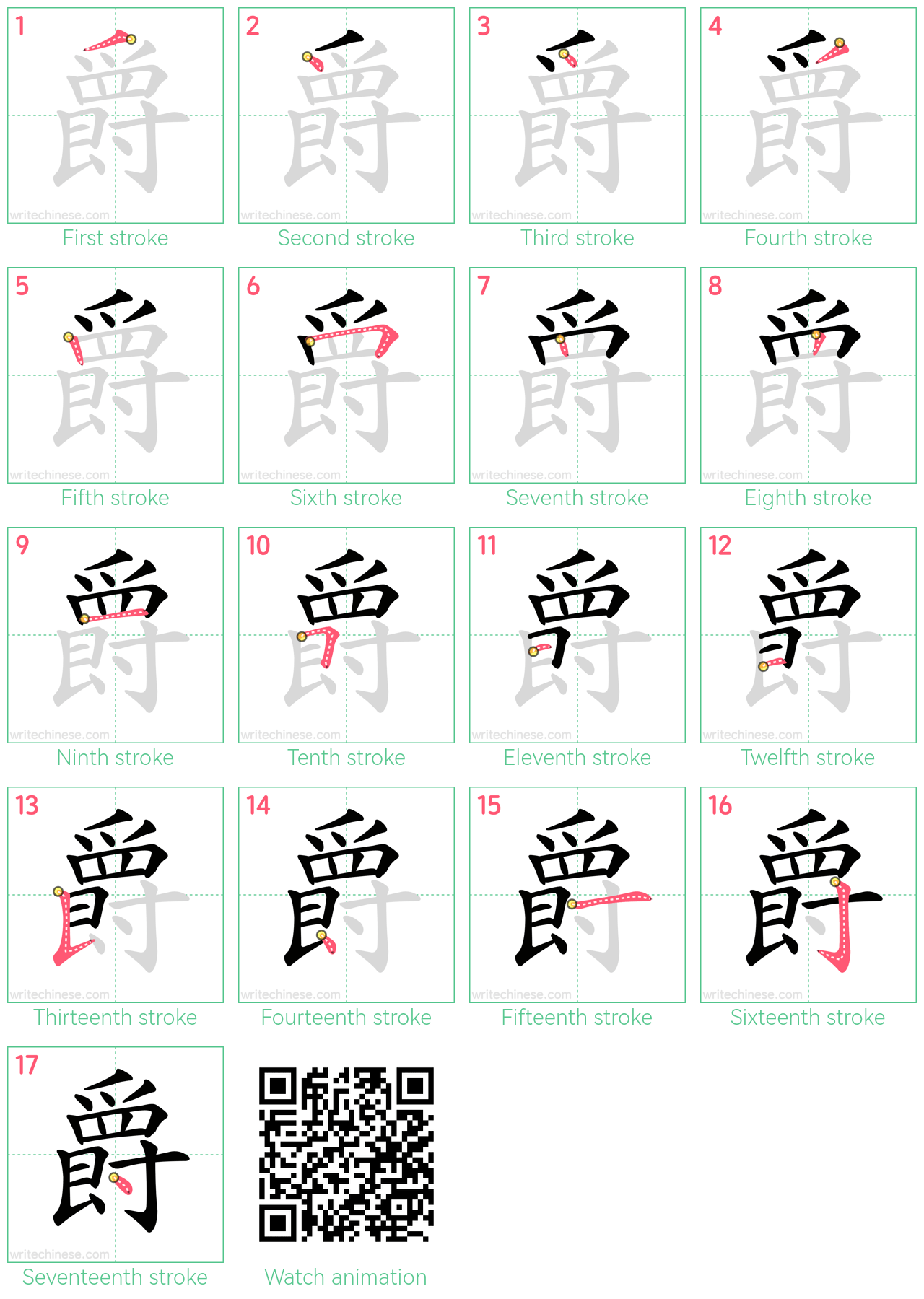 Printable Stroke Order Practice Worksheet of the Chinese character 爵