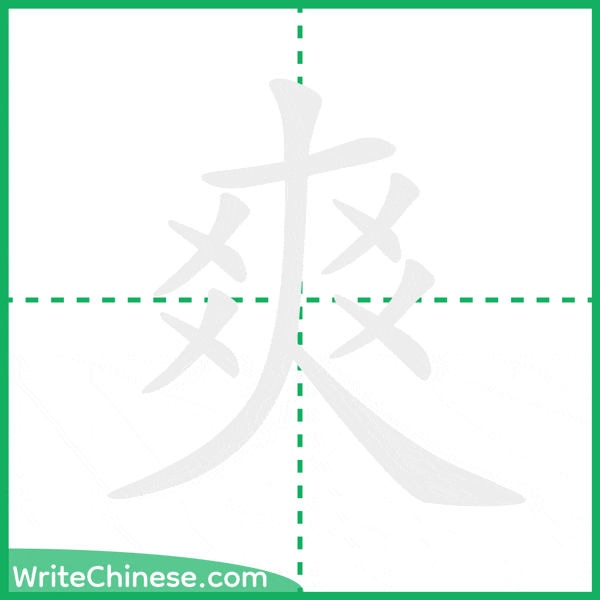 Master the Chinese character '爽' stroke by stroke with visual step-by-step instructions.