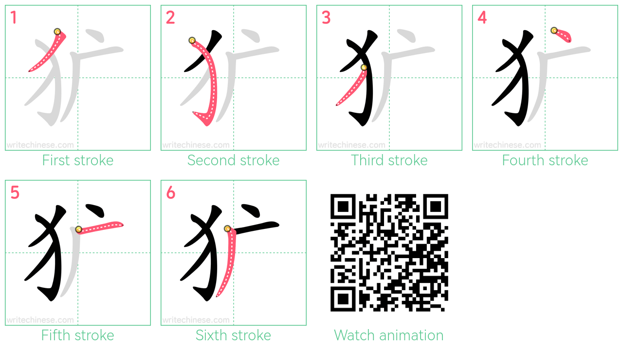 Learn to write the Chinese character "犷" by watching the stroke order animation of "犷".