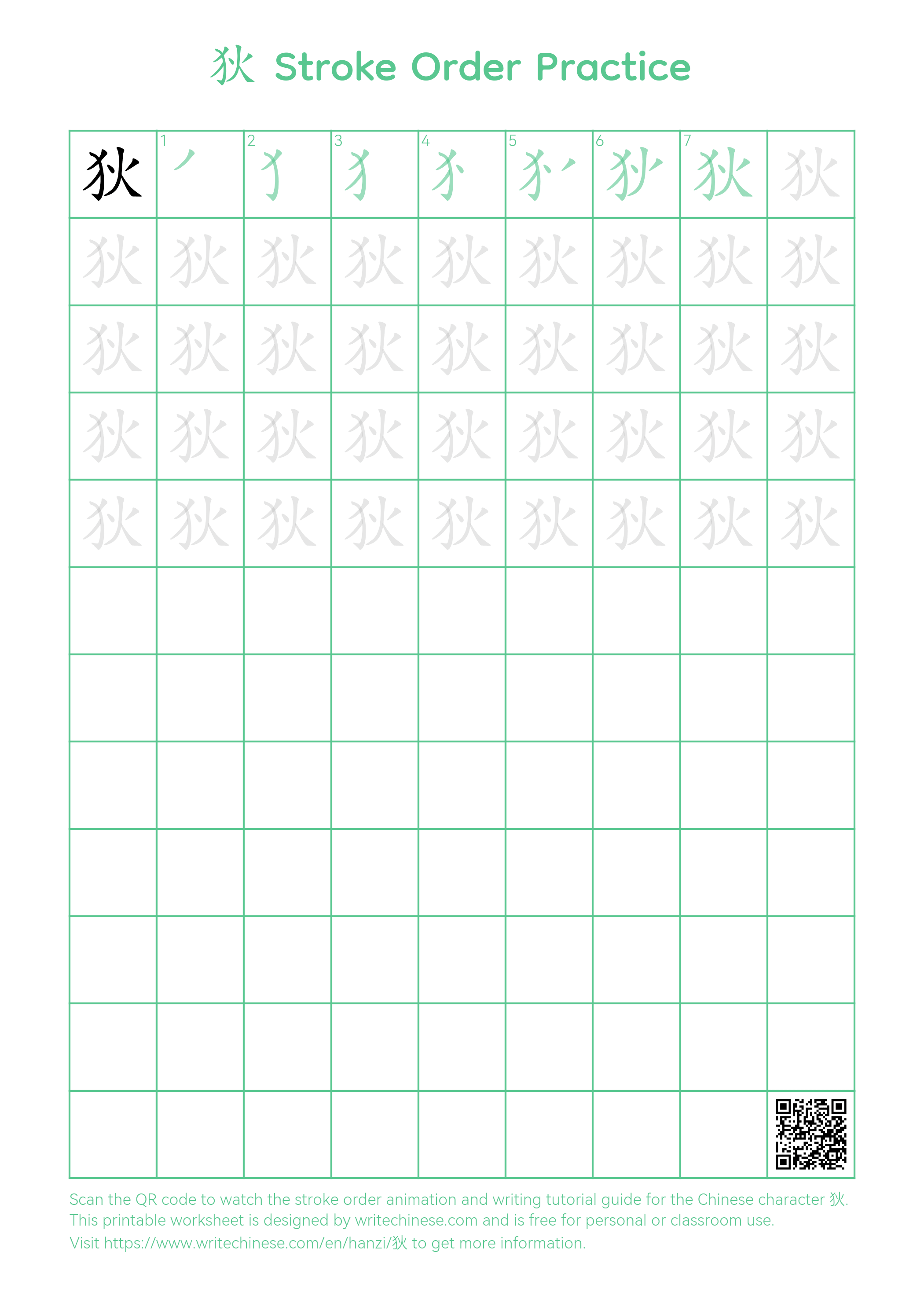 Learn the proper way to write the Chinese character '狄' through a video tutorial with a calligraphy teacher. Follow the Calligraphy Master's Step-by-Step Guide to Write the Chinese Character '狄'. You can download the printable handwriting worksheets below and practice writing together with pen and paper.