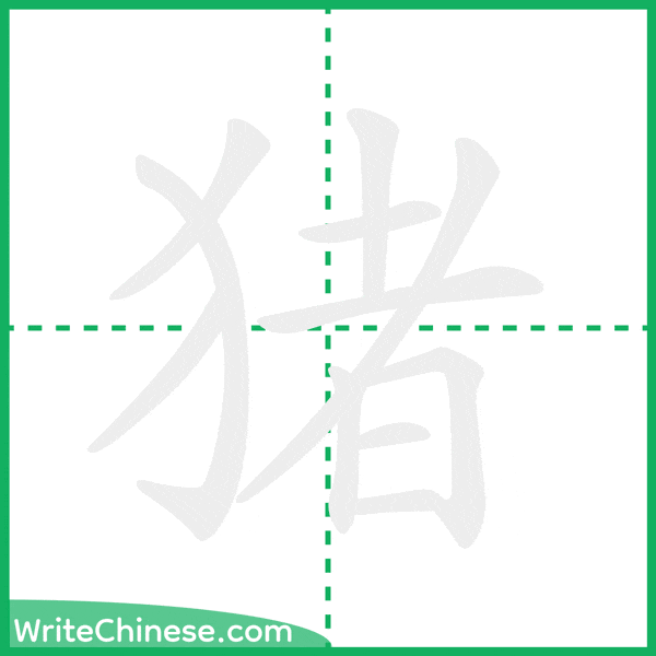 Learn to write the Chinese character "猪" by watching the stroke order animation of "猪".