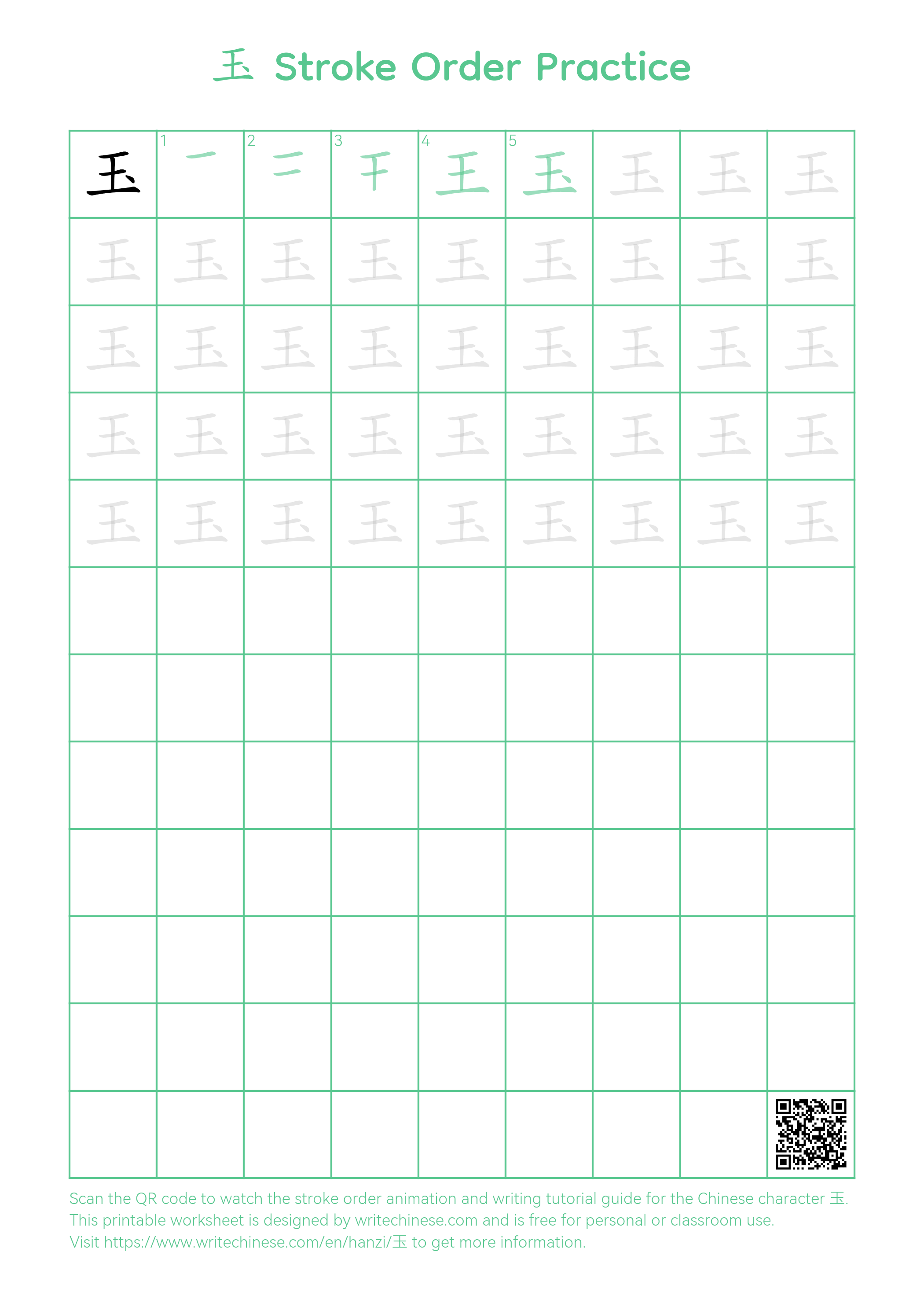 Printable Stroke Order Practice Worksheet of the Chinese character 玉