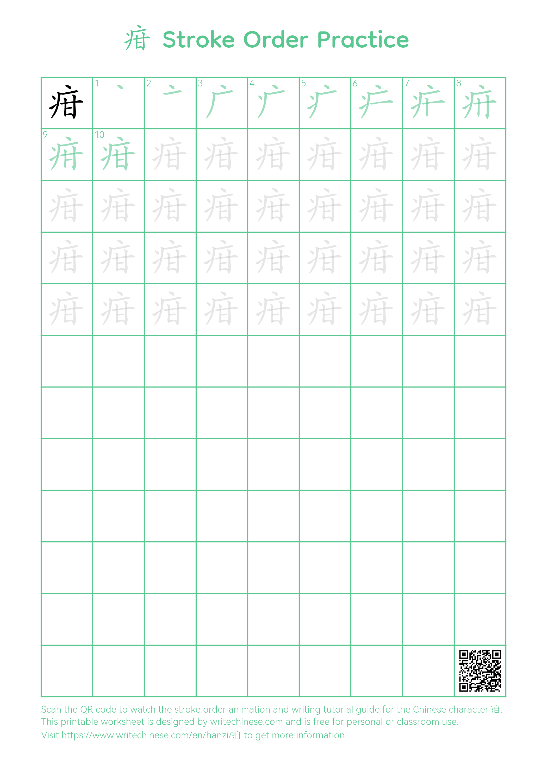 Printable Stroke Order Practice Worksheet of the Chinese character 疳