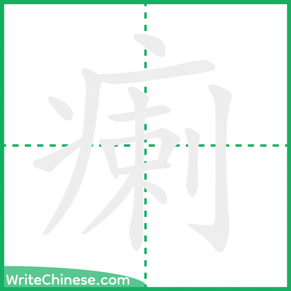Learn to write the Chinese character "瘌" by watching the stroke order animation of "瘌".