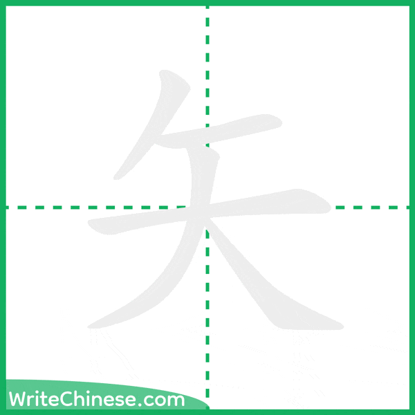 Learn to write the Chinese character "矢" by watching the stroke order animation of "矢".