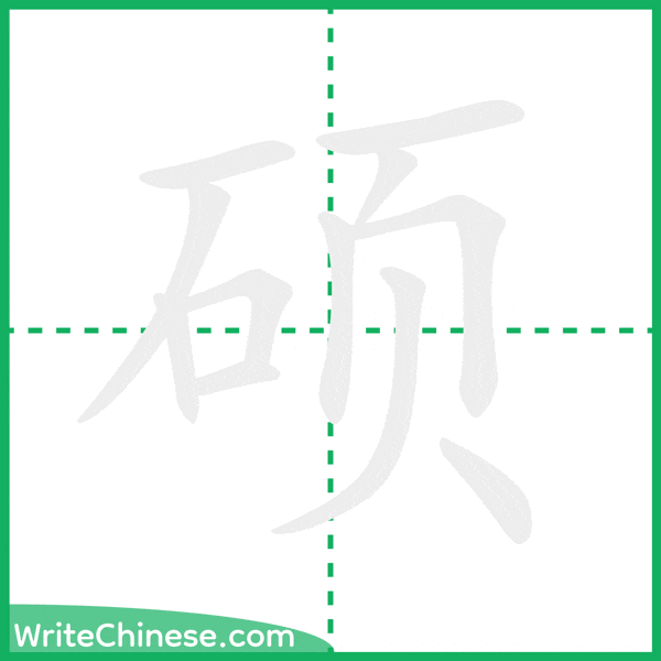 Learn to write the Chinese character "硕" by watching the stroke order animation of "硕".
