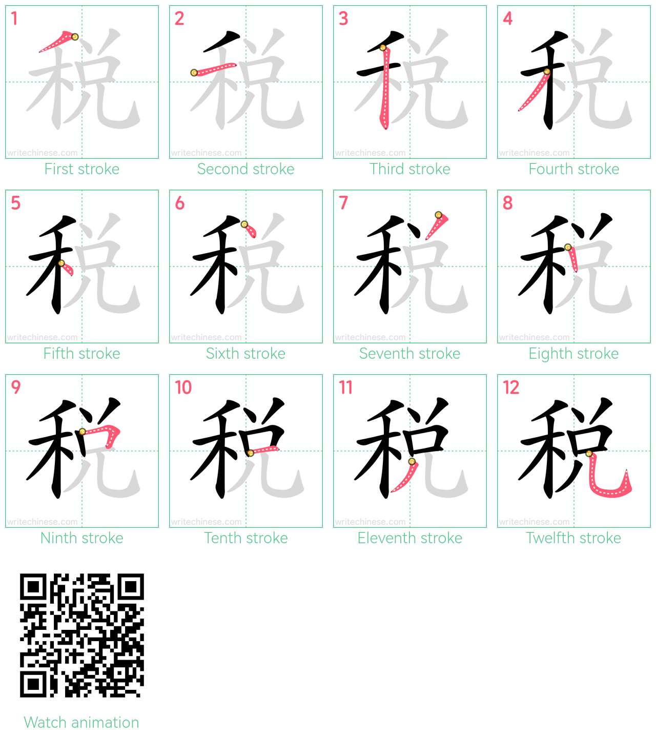 Printable Stroke Order Practice Worksheet of the Chinese character 税